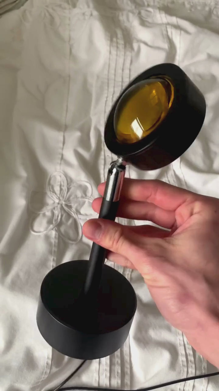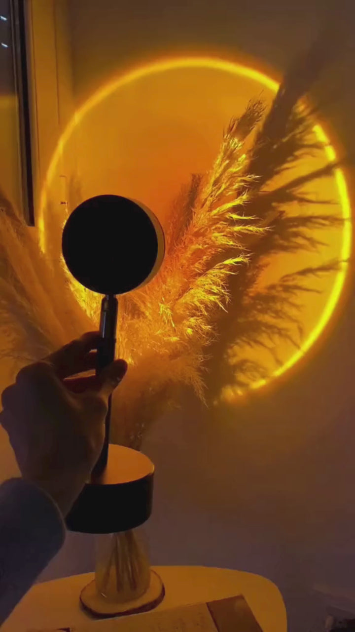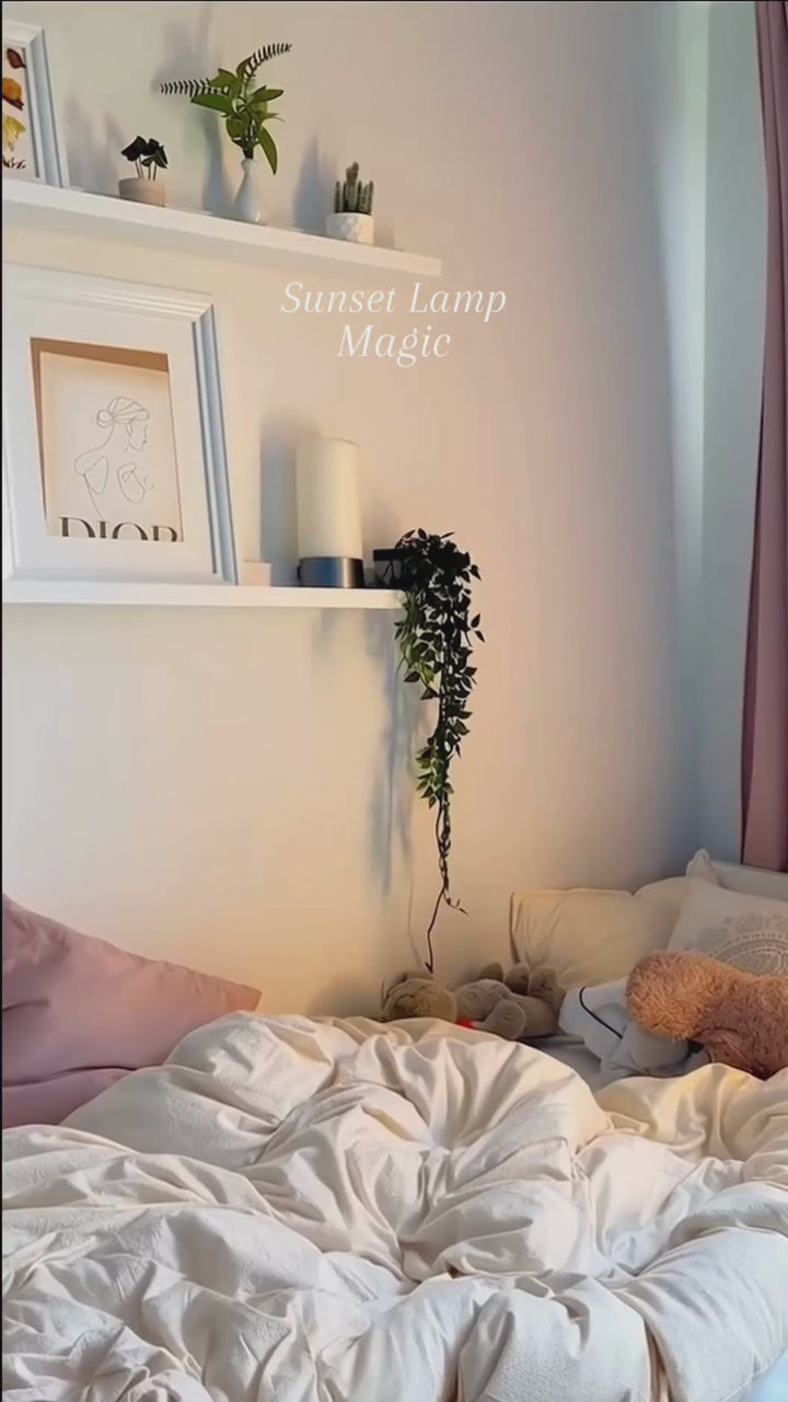 Der Sunset Lamp Projektor taucht dein Zuhause in warme, farbintensive Lichtprojektionen – von sattem Sonnenuntergang-Orange bis zu lebhaften RGB-Farben. Kompakt, kabellos betreibbar und in Sekunden einsatzbereit.
